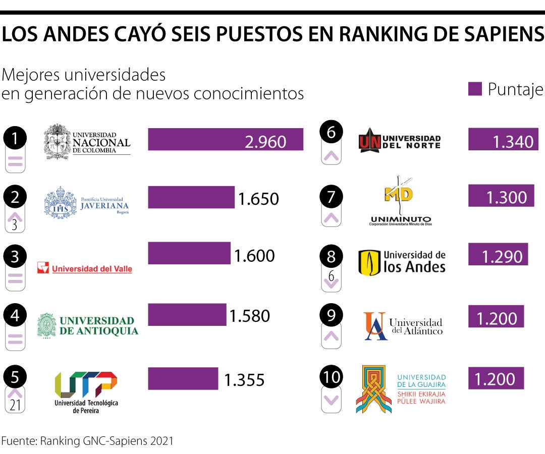 De acuerdo con la versión 27 de Sapiens Research, estas instituciones educativas tuvieron puntajes de 125, 105 y 65, respectivamente
