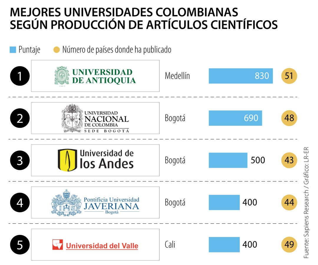 Para este estudio, la organización tiene en cuenta la sumatoria de los resultados de las cinco variables analizadas como los artículos publicados en Colombia