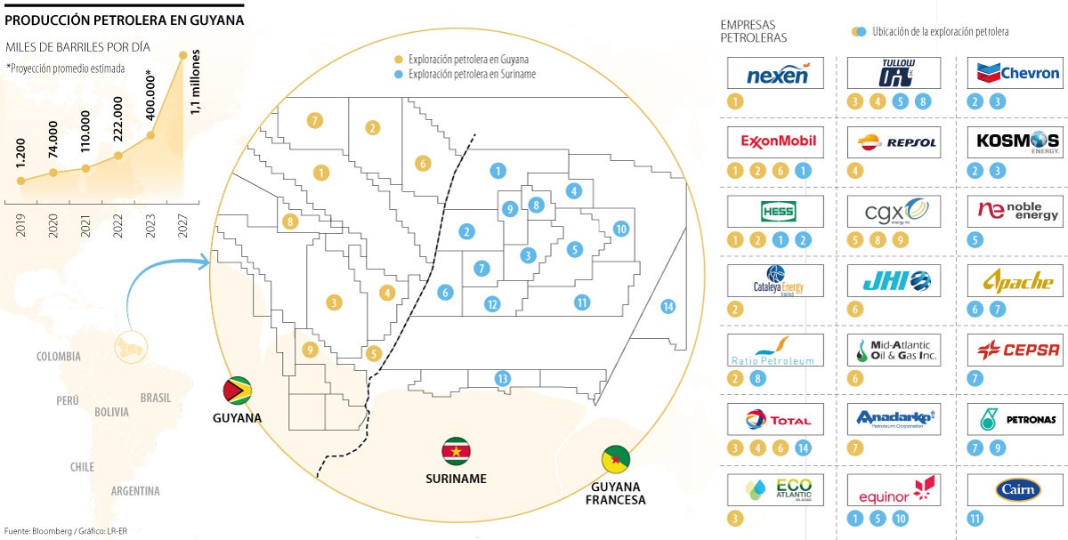 “Por eso mismo, aún hay disputas internacionales por expansión geográfica que piden Venezuela y Surinam, no quieren tierra, buscan correr sus derechos fronterizos en el agua”, explicó Claman Cheelsen investigador de mercados para América Latina de Research IP. El país planea aumentar las tasas de regalías de 2% a 10% y el impuesto corporativo a 10% y reducir los llamados límites de recuperación de costos de las compañías petroleras.