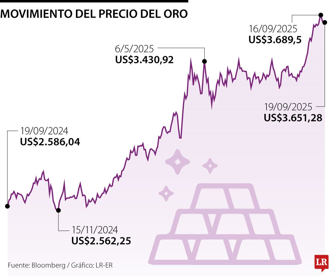 El metal al contado XAU= bajaba 0,4%, hasta los US$4.005,54 por onza. Además, en lo que va de mes, ya acumula una subida de 3,9%
