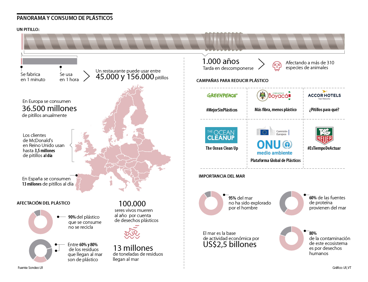 Normalmente, cuando toma un jugo o acompaña su almuerzo con una bebida, ¿siente la necesidad de pedir un pitillo? Pues bien, una de las principales afectaciones que hace el ser humano sobre los océanos está relacionada con todo el plástico que se consume y llega al fondo del mar, generando muertes de varias especies de animales acuáticos.