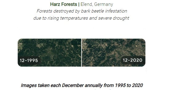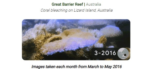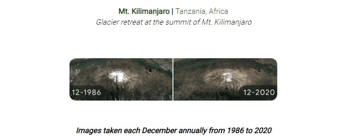 El gigante tecnológico situó su panorama visual en diferentes puntos del planeta, con fotografías satelitales, a través de la modalidad de 'real time-lapse', en donde se visualiza el deterioro de las condiciones naturales.