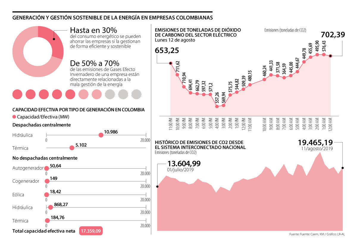 Paola Herrera, coordinadora de la línea de Energía Sostenible de la Corporación Ambiental Empresarial (Caem), filial de la Cámara de Comercio de Bogotá que ha implementado proyectos que promueven la eficiencia energética de las empresas colombianas, señaló que con solo llevar el control de los indicadores energéticos y de su consumo con buenas prácticas, una empresa puede ahorrar entre 3% a 5% de la energía.