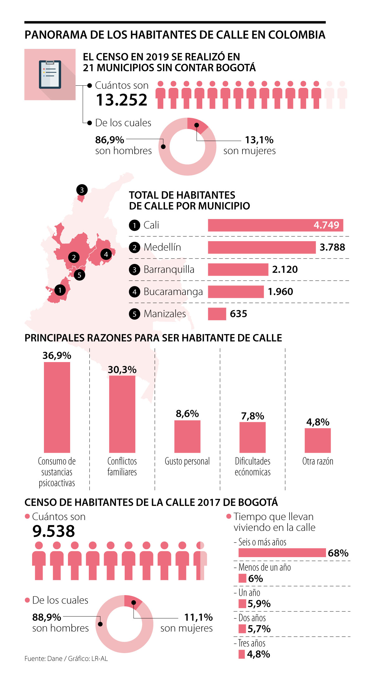 Las ayudas esperan llegar a cerca de 13.252 habitantes de calle en 21 municipios del país, sin contar Bogotá, según el último censo realizado por el Dane. Estas personas se suman a los más de 9.538 ciudadanos en Bogotá en estas condiciones.