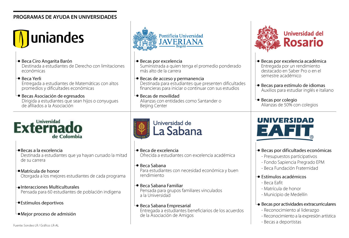 La sexta universidad que LR consultó fue la Universidad de La Sabana, la cual, para los pregrados, cuenta con cuatro modalidades de becas: excelencia, Sabana, Sabana familiar y Sabana Empresarial.