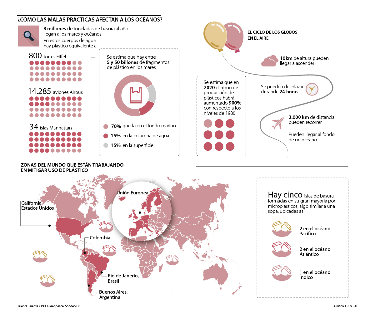 Si tenemos en cuenta que se estima que un globo con helio puede llegar a ascender unos 10 kilómetros de altura, desplazarse a la deriva durante 24 horas seguidas y recorrer una distancia de hasta 3.000 km, este plástico puede viajar fácilmente de una ciudad a otra o, incluso, llegar al fondo del mar.