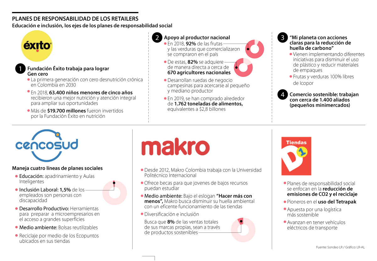 Así se puede ver en los planes de impacto social que tienen empresas como el Grupo Éxito, Cencosud, Alkosto, Makro y Tiendas D1. Las compañías, si bien adelantan frentes de trabajo distintos, que dependen de su estrategia de negocio, tienen algo en común: todas apuestan por los jóvenes, su educación, y la inclusión al mercado laboral.