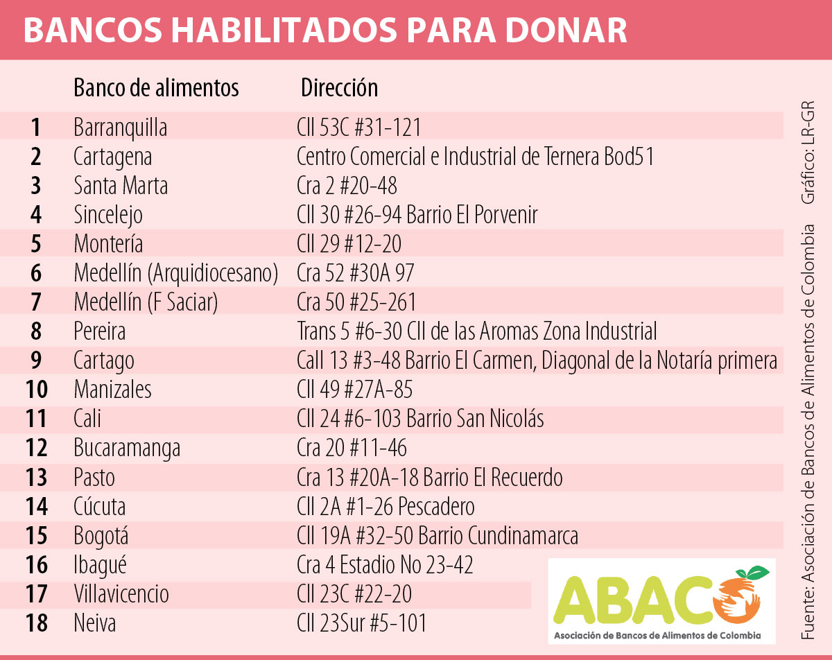 Ahora bien, a pesar de estas cifras tan alarmantes, Abaco afirma que los Bancos de Alimentos de Colombia rescatan alrededor de 22.000 toneladas de alimentos al año. Aptas para el consumo humano como consecuencia de las alianzas creadas con agricultores, restaurantes, hoteles, industria en general y personas del común que tengan la vocación de ayudar bien sea donando alimentos, dinero o tiempo a esta labor.