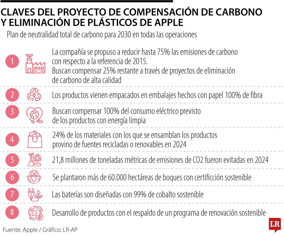 Apple tiene una gama de acciones variadas en frentes de compensación de huella de carbono, ensamblaje de dispositivos y hasta el embalaje de los mismos