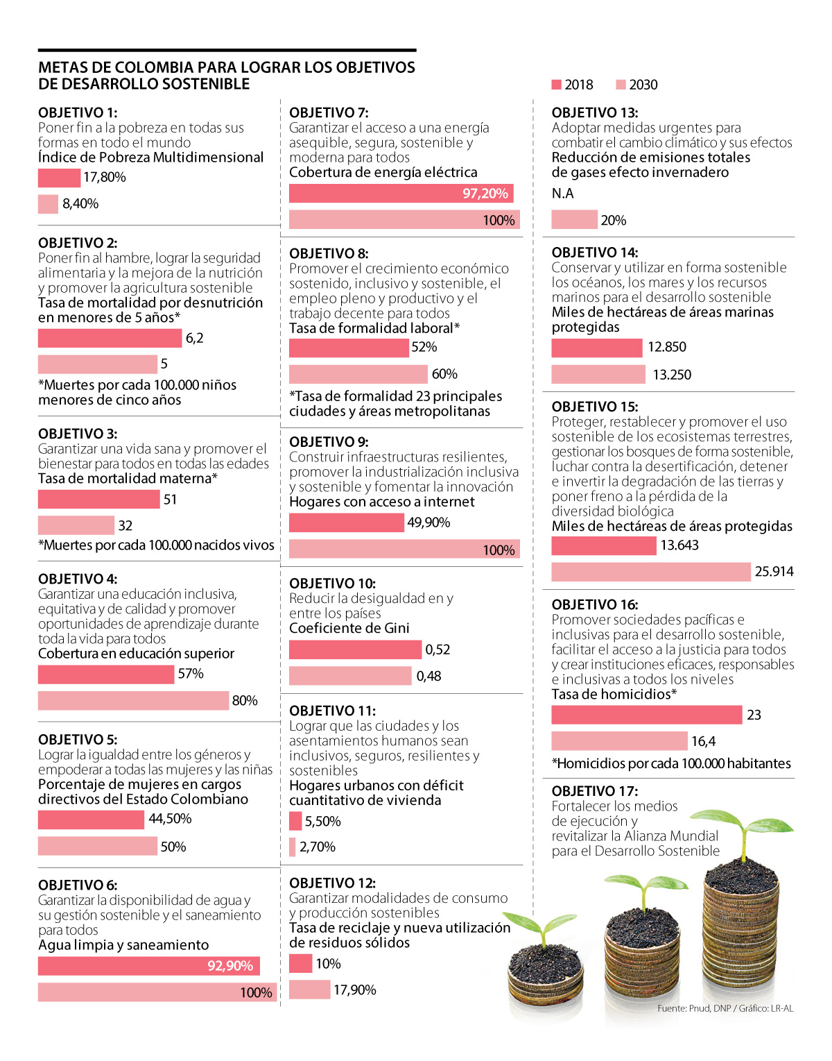 Colombia hace parte de los 193 países que se comprometieron a cumplir los 17 Objetivos de Desarrollo Sostenible (ODS). Una serie de metas que buscan erradicar la pobreza extrema, combatir la desigualdad y la injusticia, y solucionar el cambio climático para 2030.