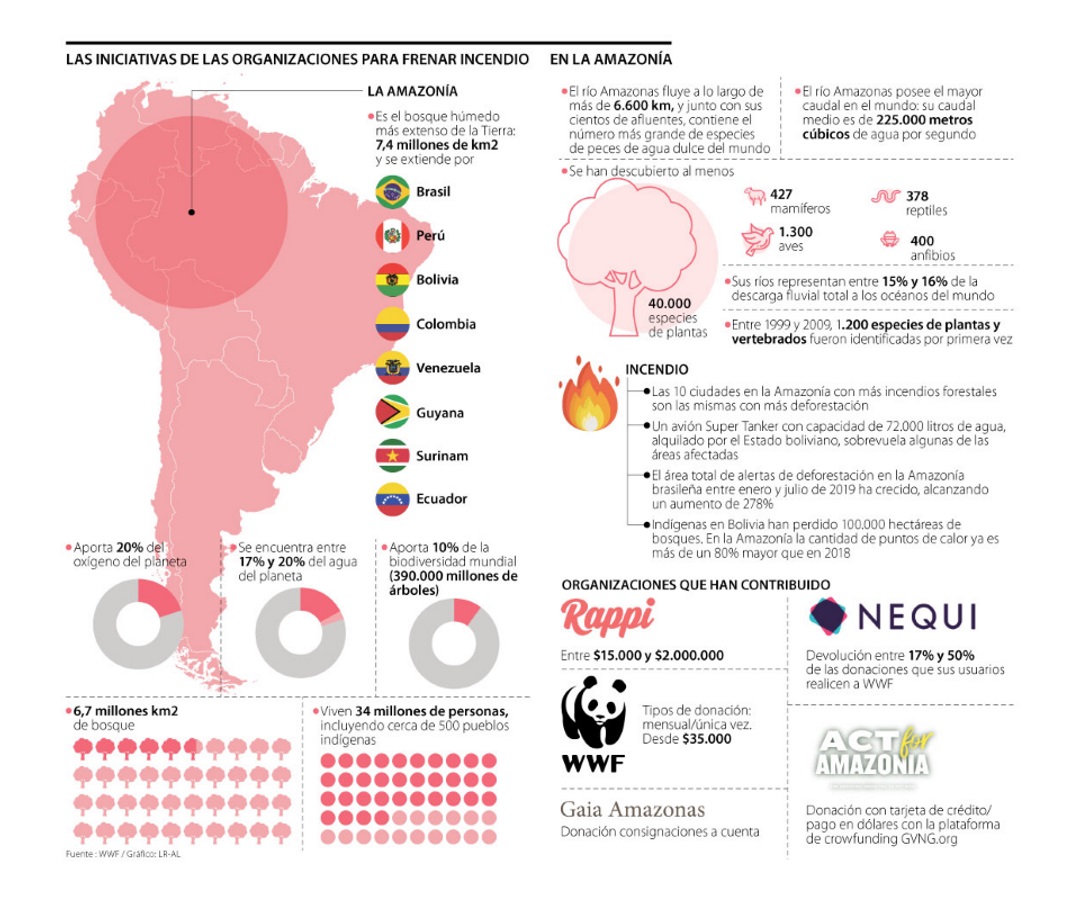 Por su parte, Rappi, a través del botón Act for Amazonía, disponible hasta el 6 de septiembre, permite que los usuarios donen entre $15.000 hasta $2 millones, para ayudar a reconstruir las hectáreas destruidas por la catástrofe ambiental. Los fondos recolectados serán destinados a organizaciones que trabajan por la preservación del Amazonas.
