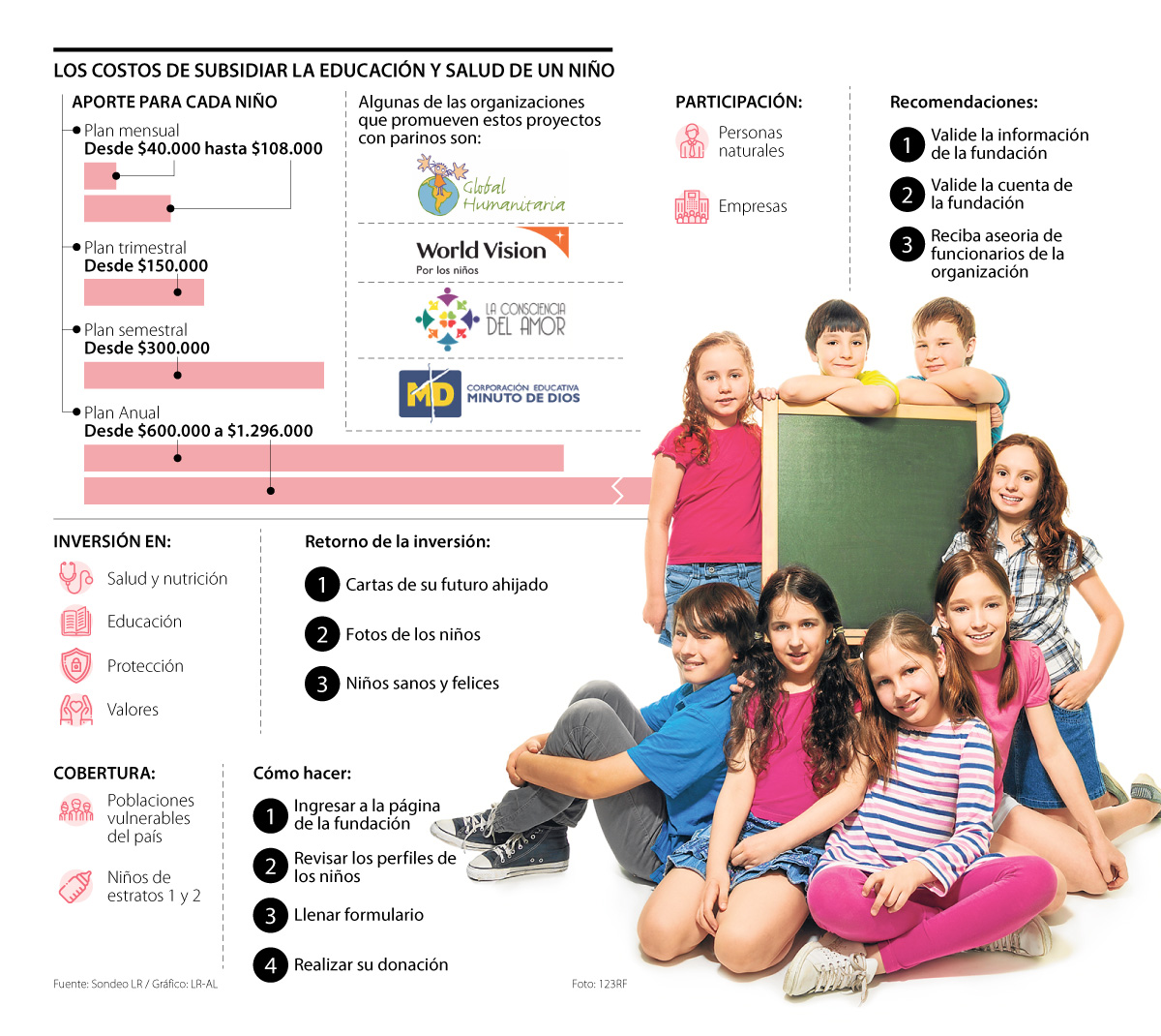Por su parte, Visión Mundial, una organización a nivel global que tiene más de 40 años en Colombia, también maneja un monto de $40.000, para que padrinos realicen sus contribuciones a través de su página web.