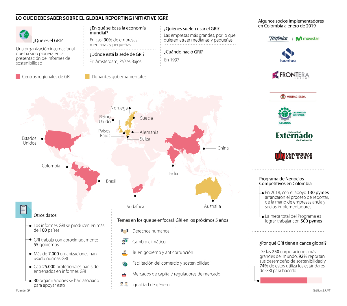 En seis países del mundo ya la empresa está empezando a implementar este proyecto. Colombia, por ejemplo, es uno de los países elegidos por el GRI en Latino América para ser parte del Programa de Negocios Competitivos. Según Pradilla “en 2018, con el apoyo 130 Pyme arrancaron el proceso de reportar, de la mano de empresas ancla y socios implementadores en el país”.