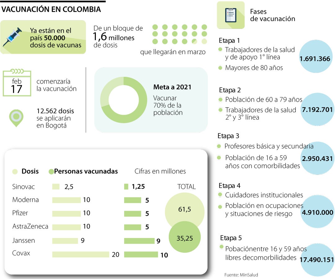 Con la llegada de otras 50.000 dosis de vacunas la próxima semana, el Gobierno Nacional espera llegar al millón de dosis en marzo