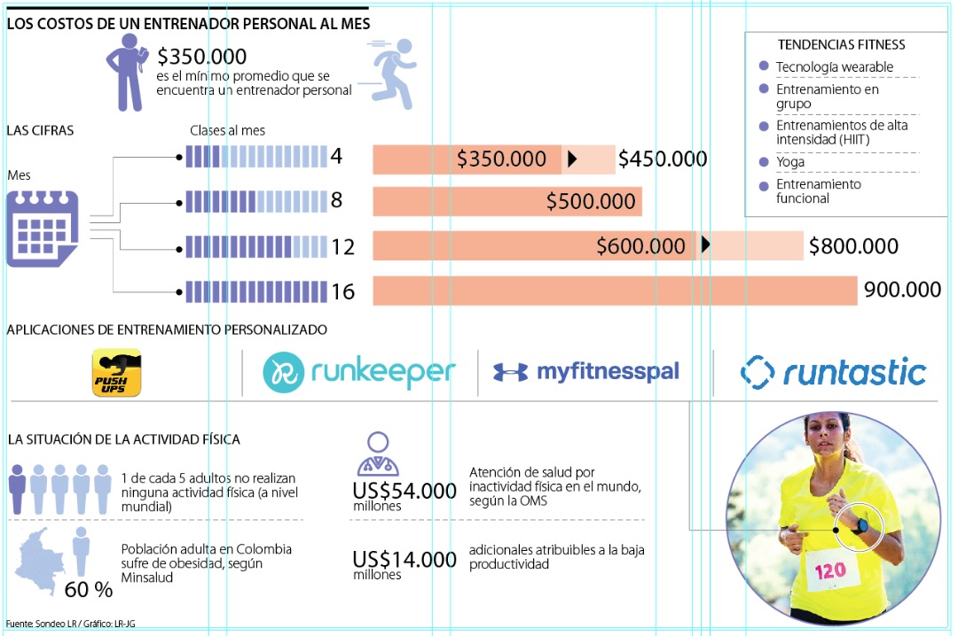 Cifras de la Secretaría Distrital de Bogotá señalan que actualmente solo cerca de la mitad de la población realiza alguna actividad física. Esta situación no solo abre la preocupación sobre el sedentarismo en el país, sino, además, potencia algunos negocios como el de entrenamiento personalizado.