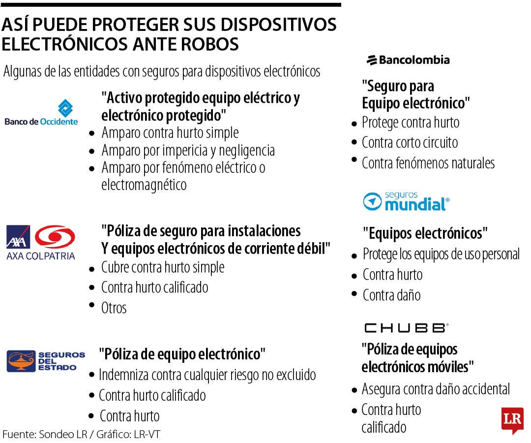 Axa Colpatria, Seguros Mundial, Bancolombia, Banco de Occidente y Seguros Bolívar, son algunas de las entidades con pólizas que protegen sus dispositivos electrónicos