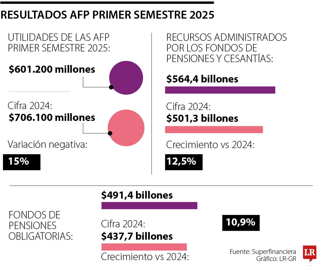 Los fondos de pensiones registraron $601.200 millones en utilidades a junio de este año, cifra que dista de los $706.000 millones de 2024