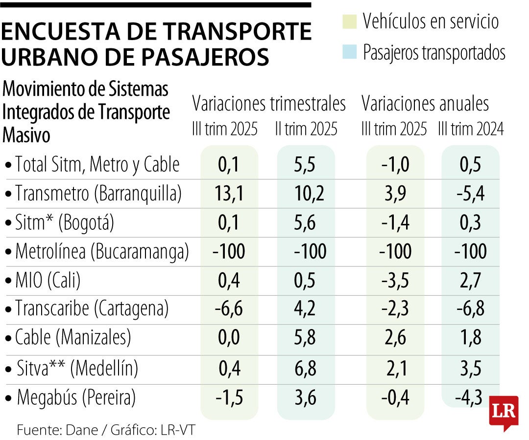 Esto de acuerdo con la Encuesta de Transporte Urbano de Pasajeros que realiza en Departamento Administrativo Nacional de Estadística, Dane