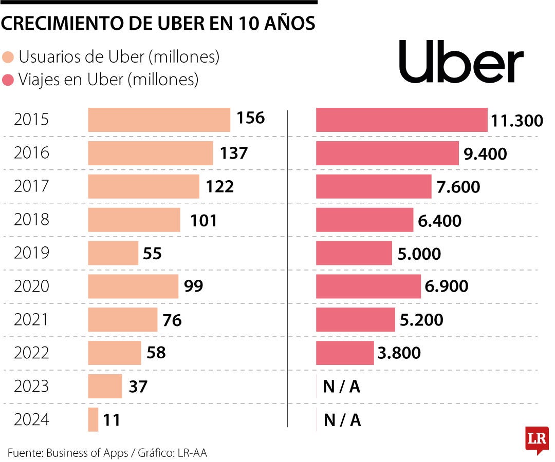 La cantidad de viajes completados durante 2024 ascendió a 11.300 millones, una cifra que casi duplica los niveles prepandemia
