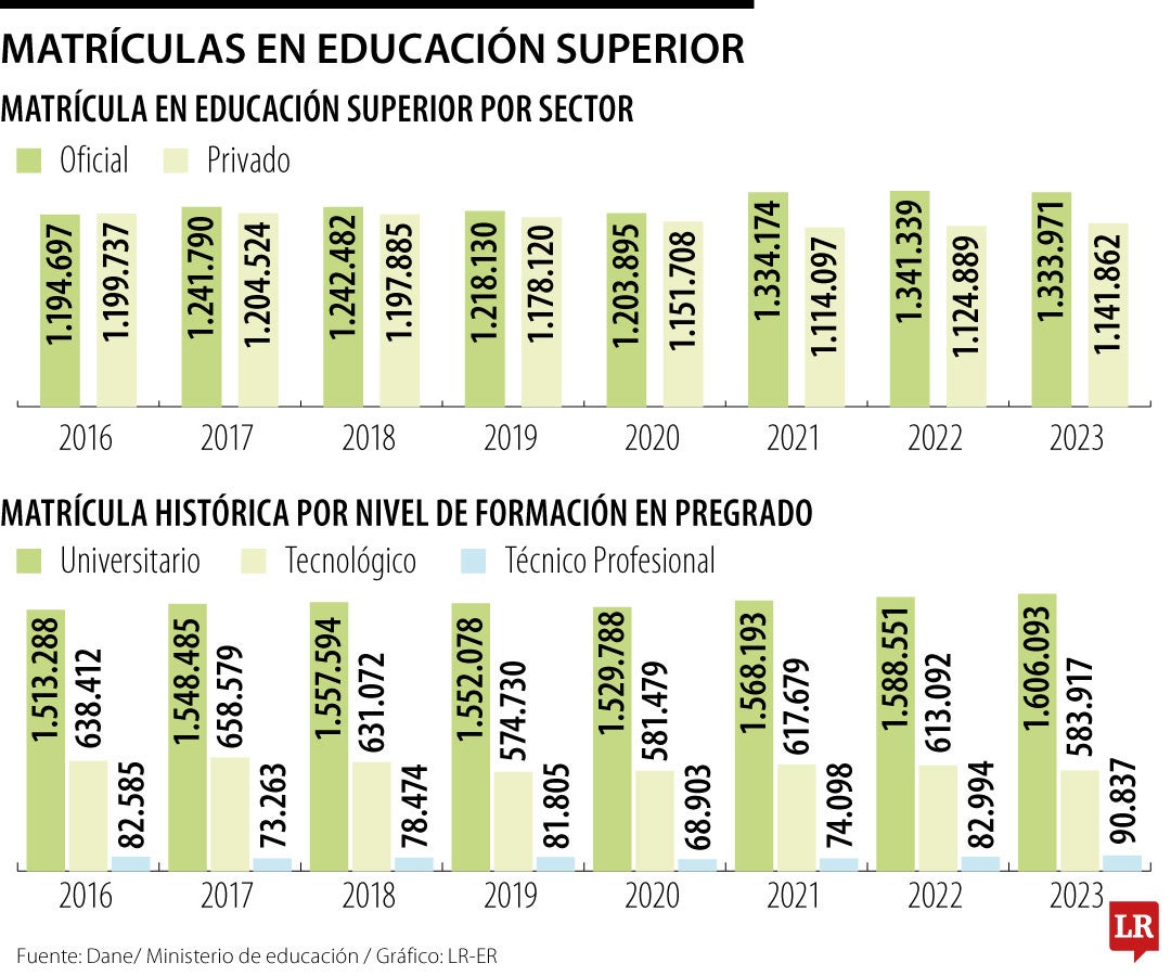 El informe del Dane y el Ministerio de Educación señaló que los cambios más significativos con respecto a 2022 se presentaron en el nivel de posgrado