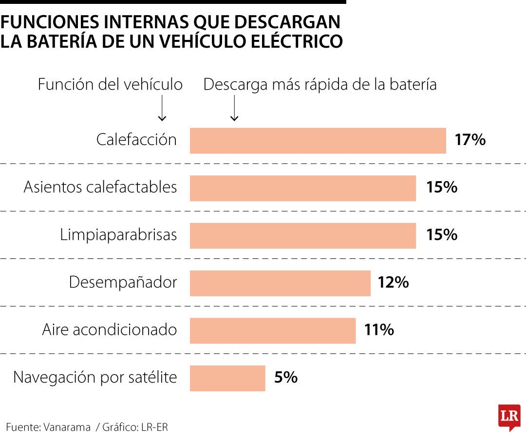 Asientos calefactables, aire acondicionado, navegación por satélite, desempañador, entre las funciones que reducen la autonomía