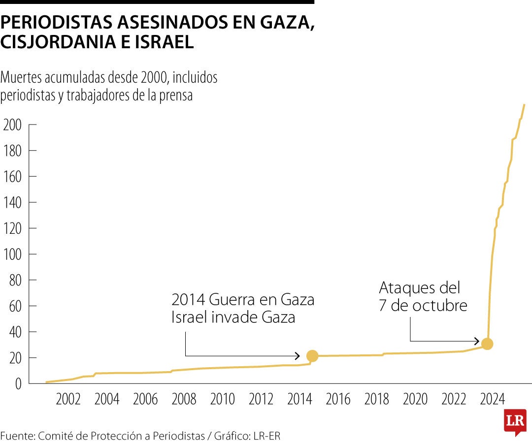 La asociación recuerda los reporteros asesinados en Gaza y, citando a CPJ, RSF y la FIP, además de más de 200 trabajadores de prensa fallecidos, en su mayoría palestinos